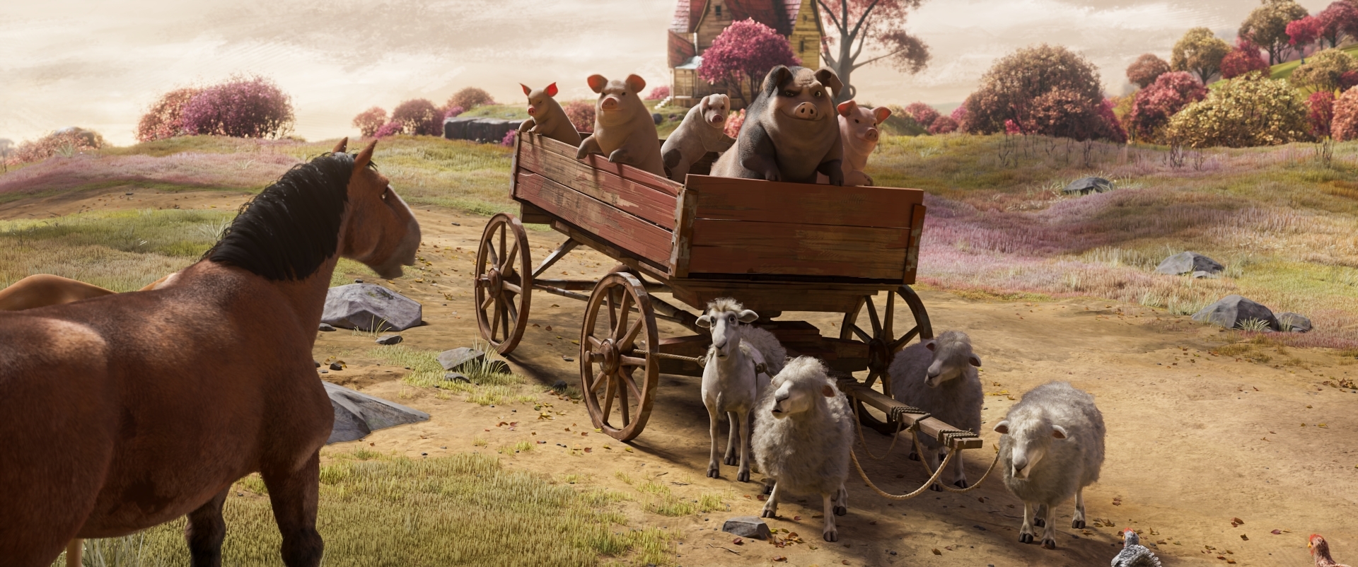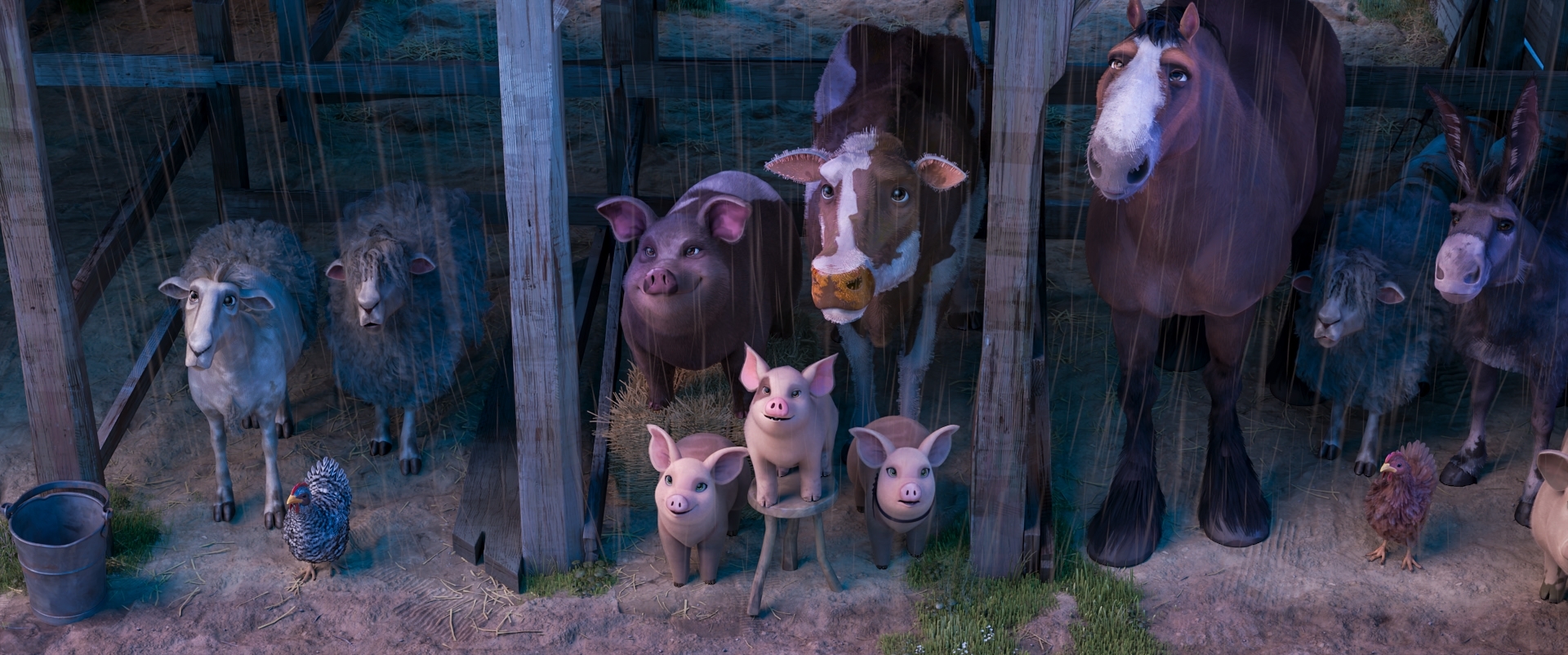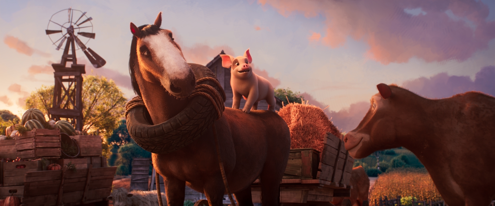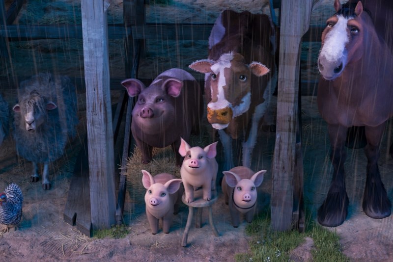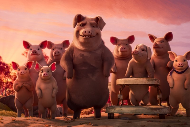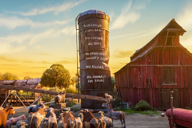 Hlasy v původním znění: Seth Rogen, Kieran Culkin, Woody Harrelson, Andy Serkis, Steve Buscemi, Glenn Close, Kathleen Turner, Jim Parsons Hlasy v českém znění: Bohdan Tůma, Matěj Převrátil, Miroslav Táborský, Zlata Adamovská, Martin Písařík, Zdeněk Mahdal, Antonie TalackováPoučný příběh podle knihy Gerge Orwella